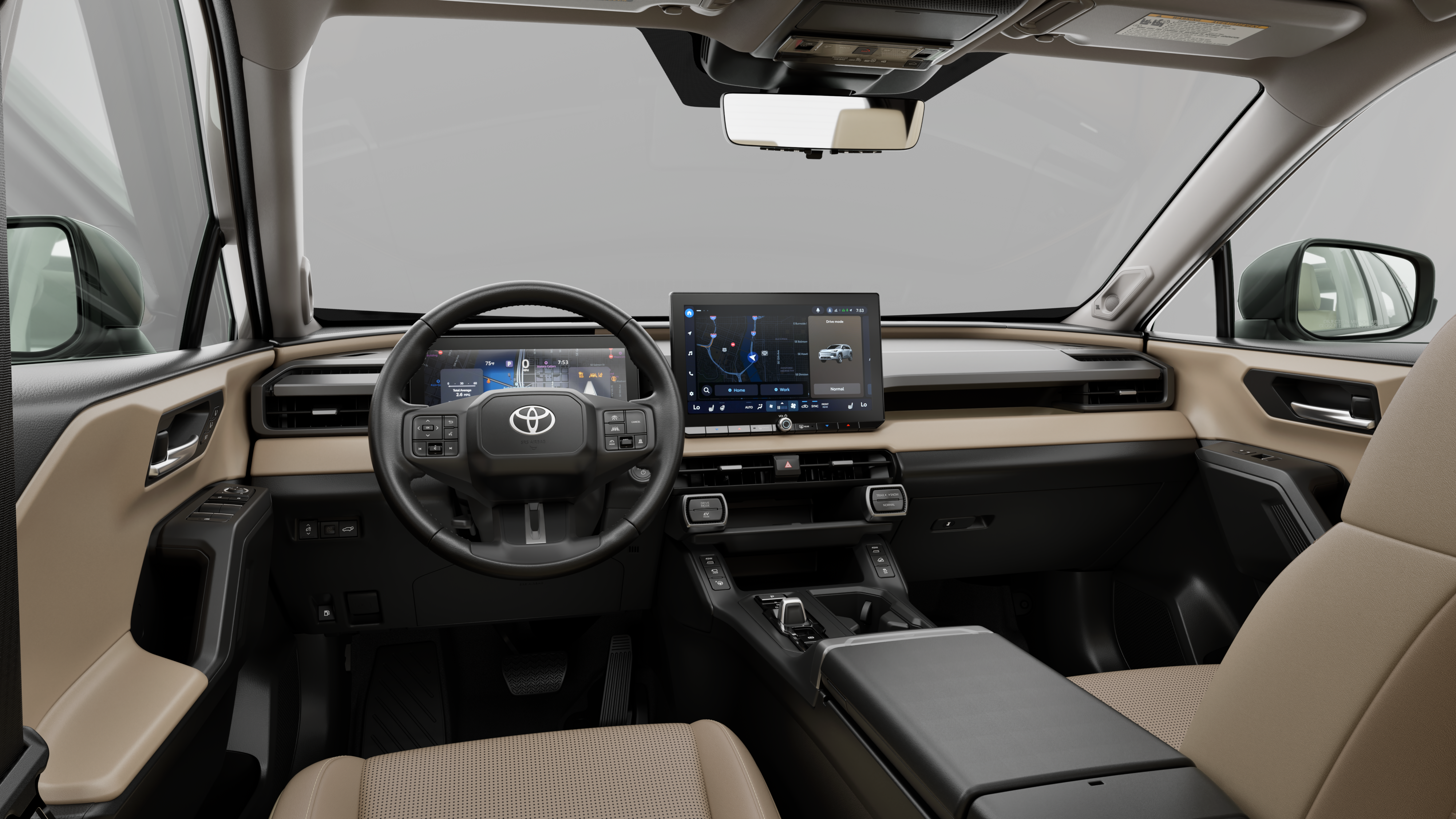 - Center console with covered storage compartment, reversible armrest/console tray, two cup holders, drive mode (Trail, Snow, Normal and EV mode ), auto LSD/VSC, Electric Parking Brake (EPB) and automatic Brake Hold controls, and front storage tray