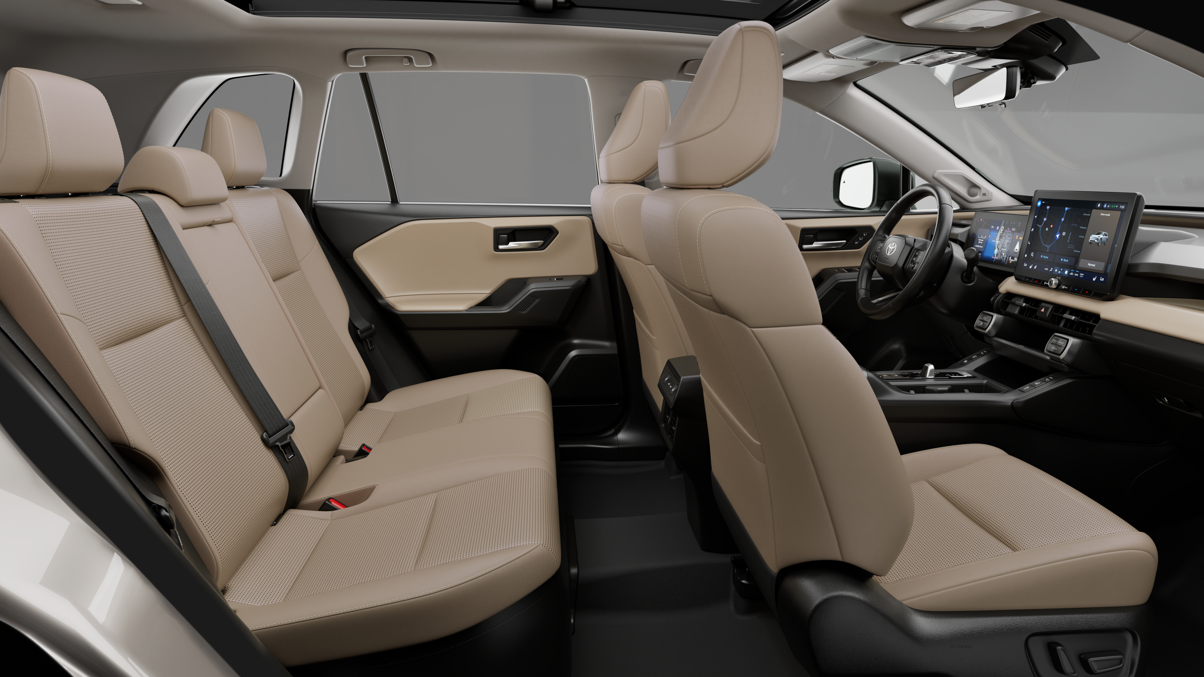 - Front and outboard second-row seatbelts with seatbelt pretensioners with force limiters