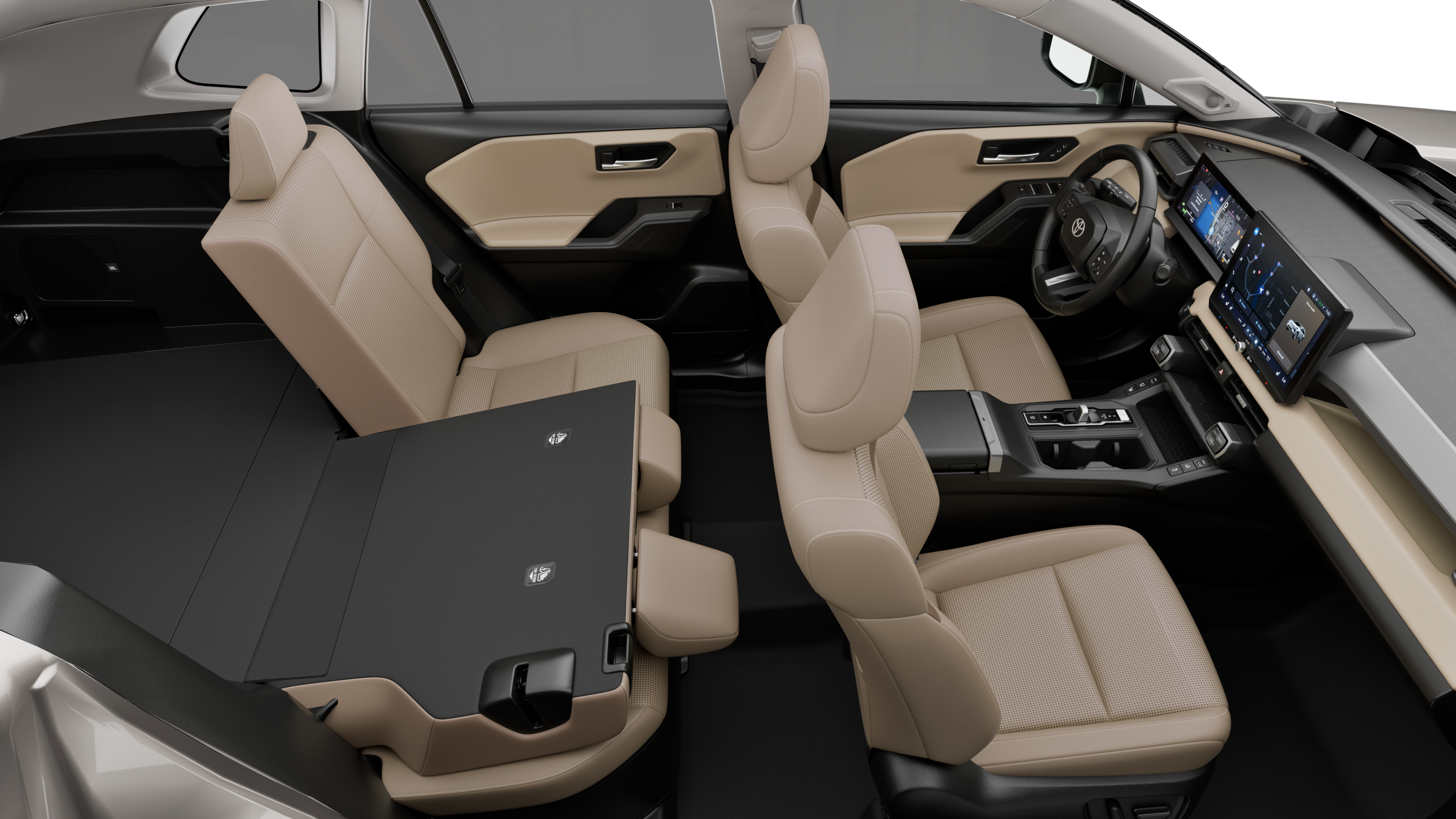 - 60/40 split reclining fold-flat rear seat with center armrest and cup holders