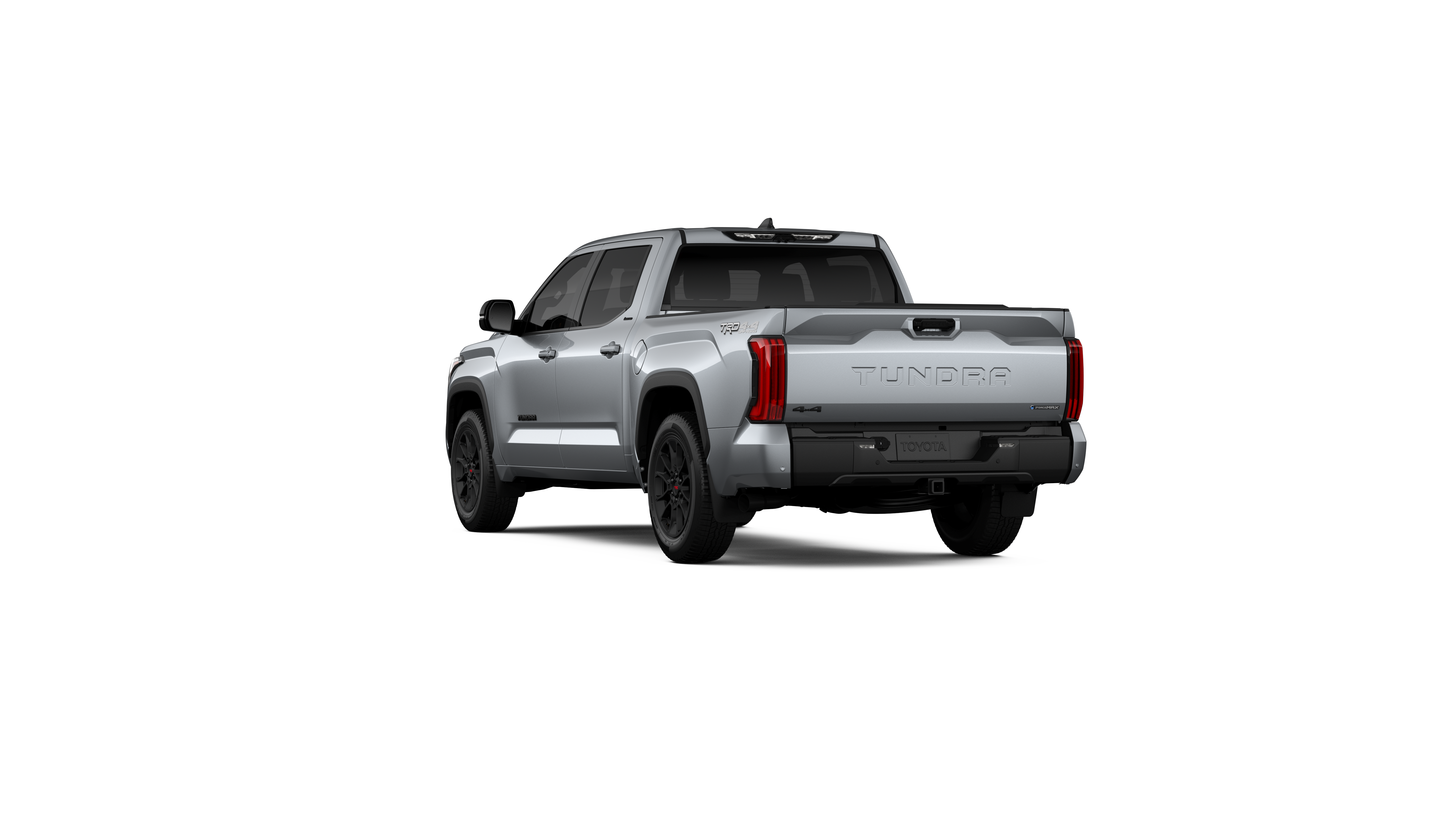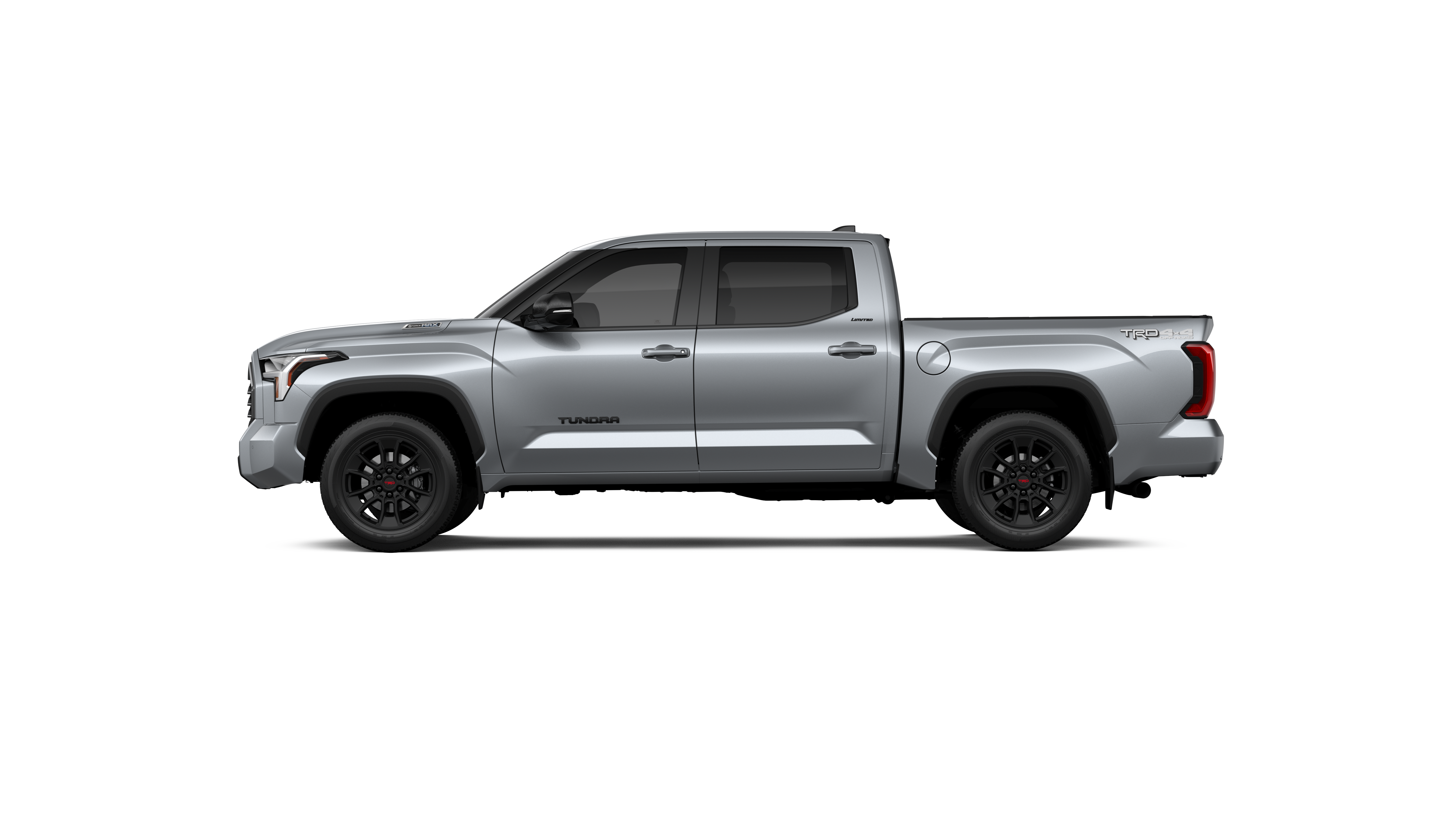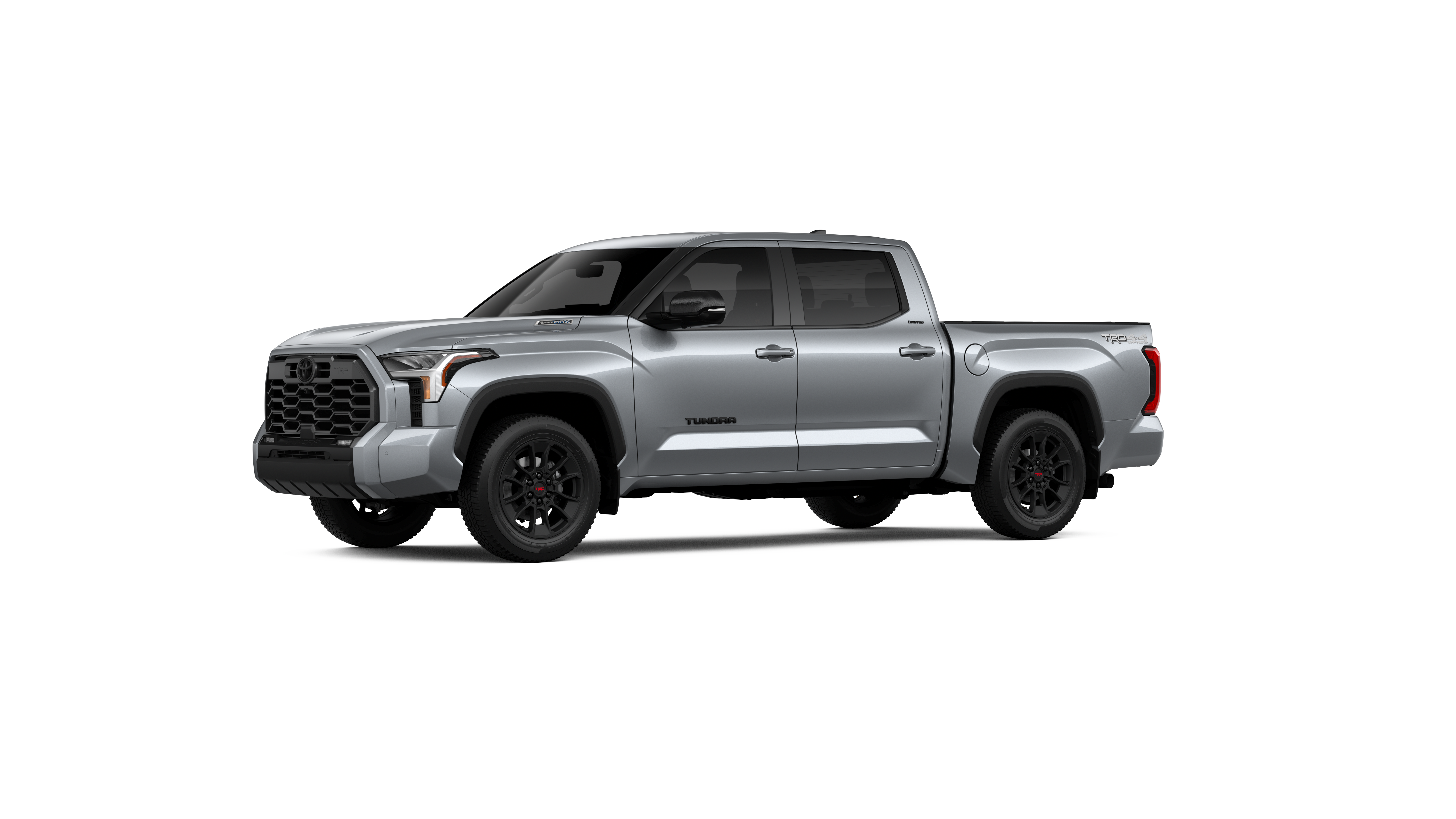 - Chrome "TUNDRA" and "LIMITED" door badges, door handles and window molding; color-keyed mirror caps and tailgate spoiler; gray-painted overfenders