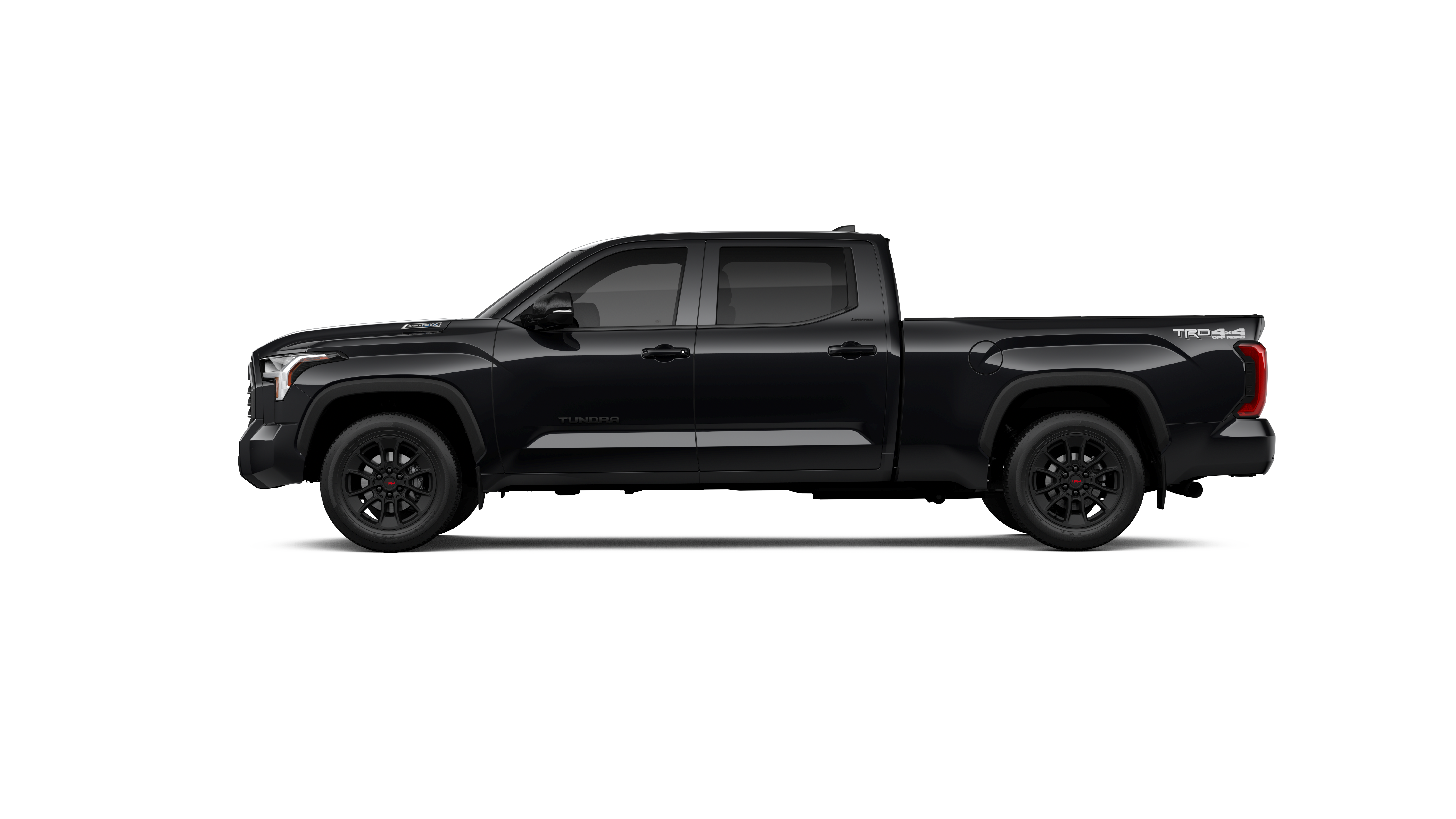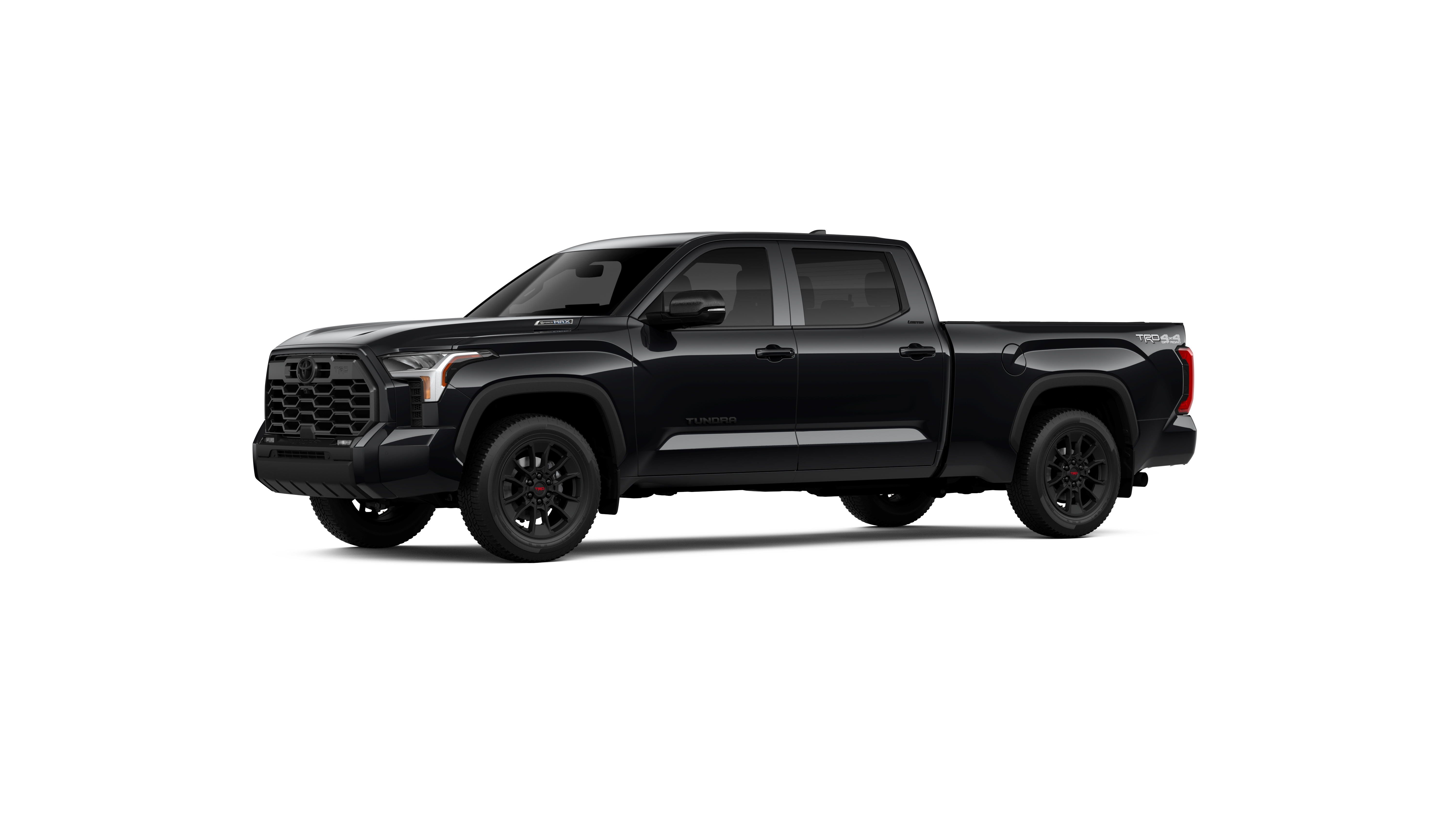 - Chrome "TUNDRA" and "LIMITED" door badges, door handles and window molding; color-keyed mirror caps and tailgate spoiler; gray-painted overfenders