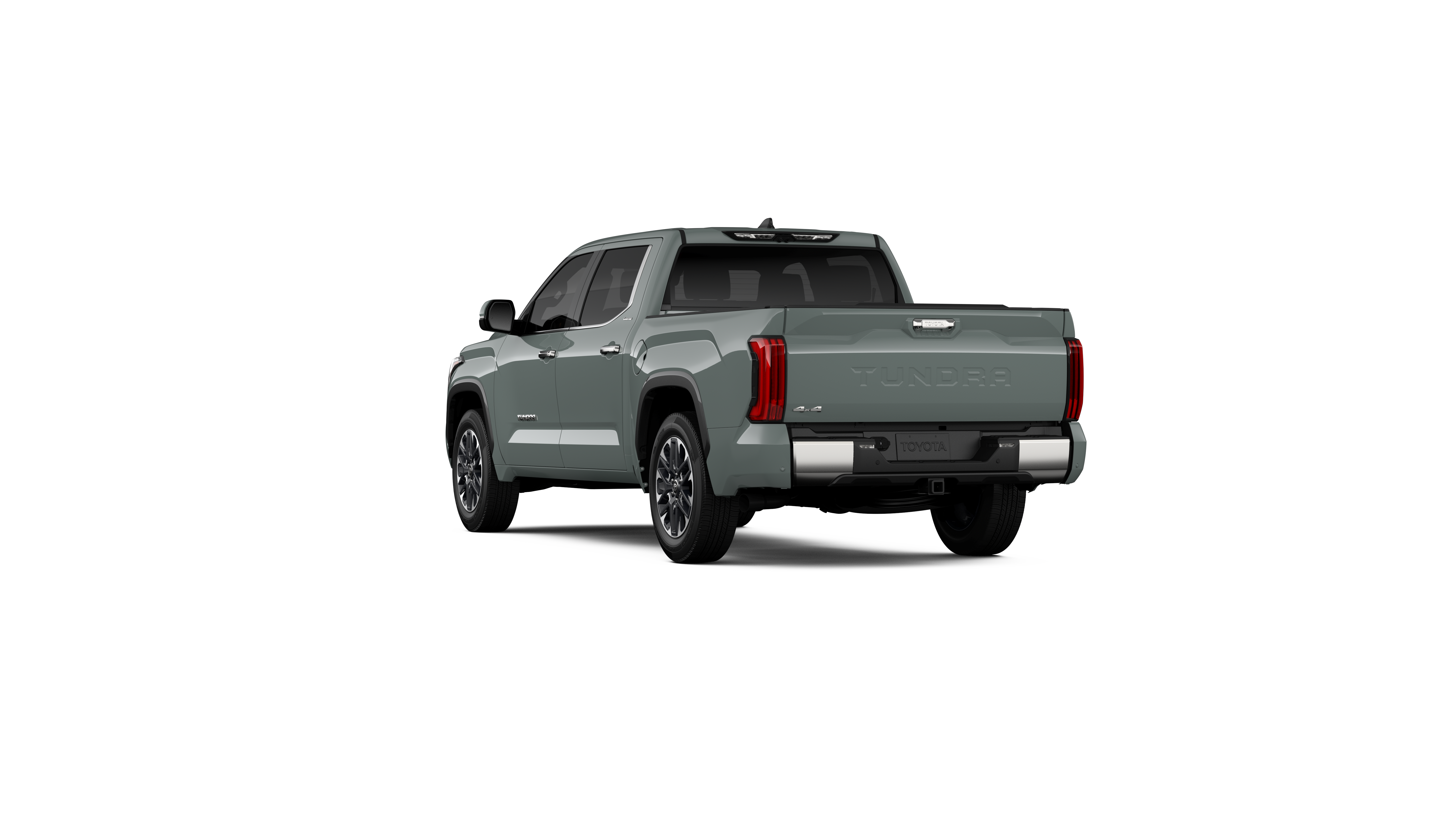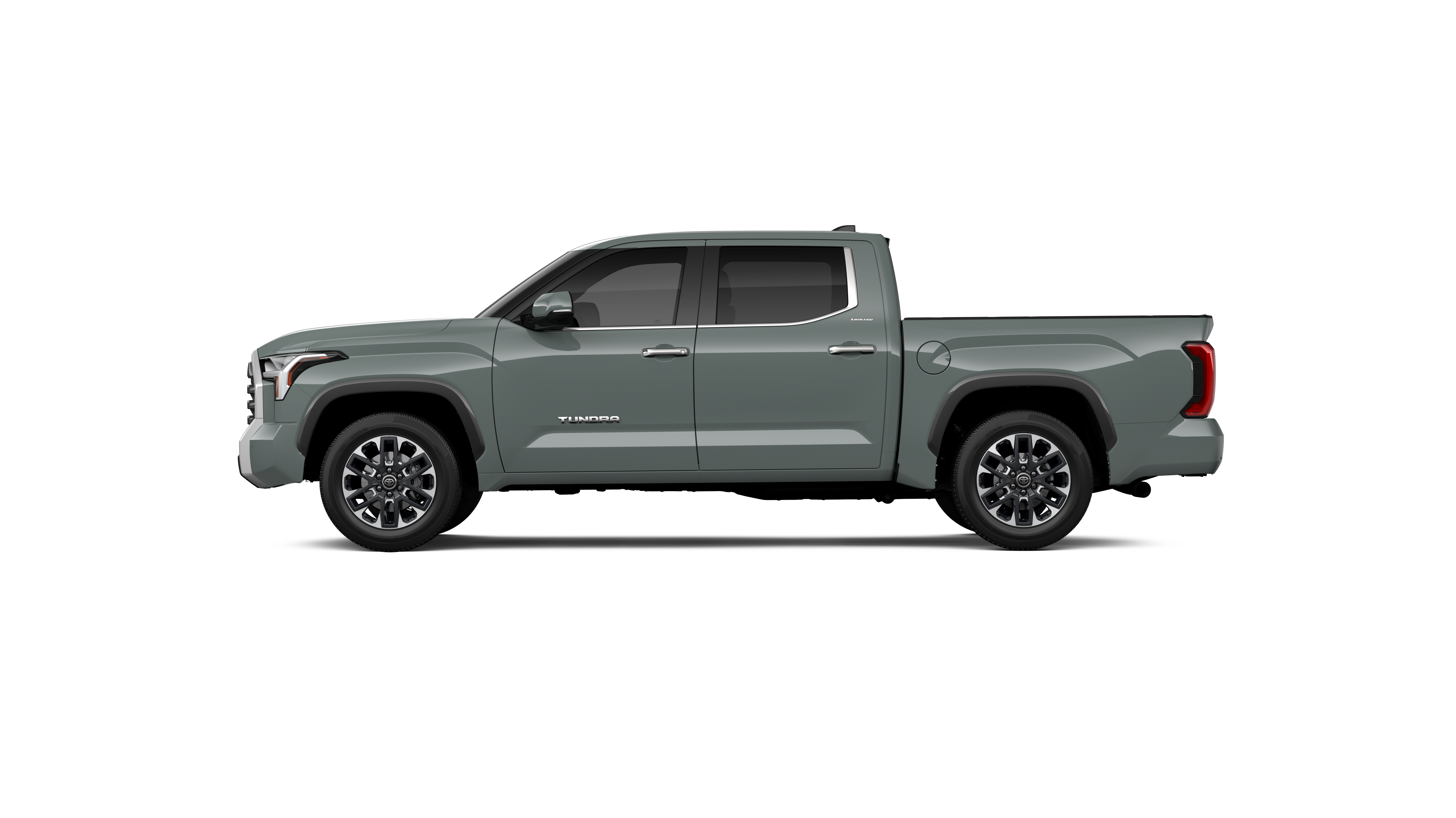 - Chrome "TUNDRA" and "LIMITED" door badges, door handles and window molding; color-keyed mirror caps and tailgate spoiler; gray-painted overfenders